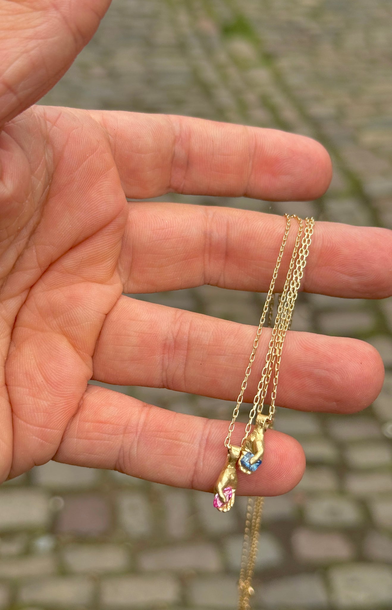 My hand pendants are almost exclusively made with sapphires due to their durability - on occasion and with very strict parameters I am amble to set alternate stones or clients own stones into the 'clutching' hand style, typically the stone should not go much above 5x3mm - please get in touch via my bespoke page to enquire further.