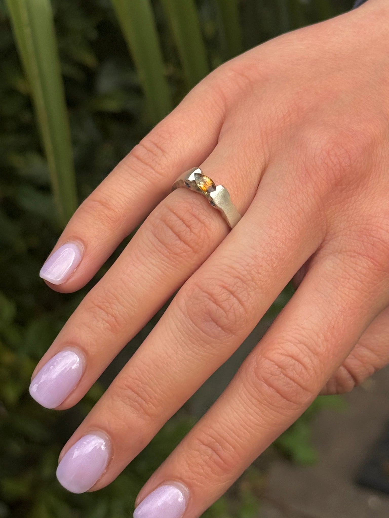 A new addition to my site in solid white gold featuring an incredibly unique bi-colour orange and grey sapphire - this style can be made in alternate sizes and with different colours and shades of sapphire.