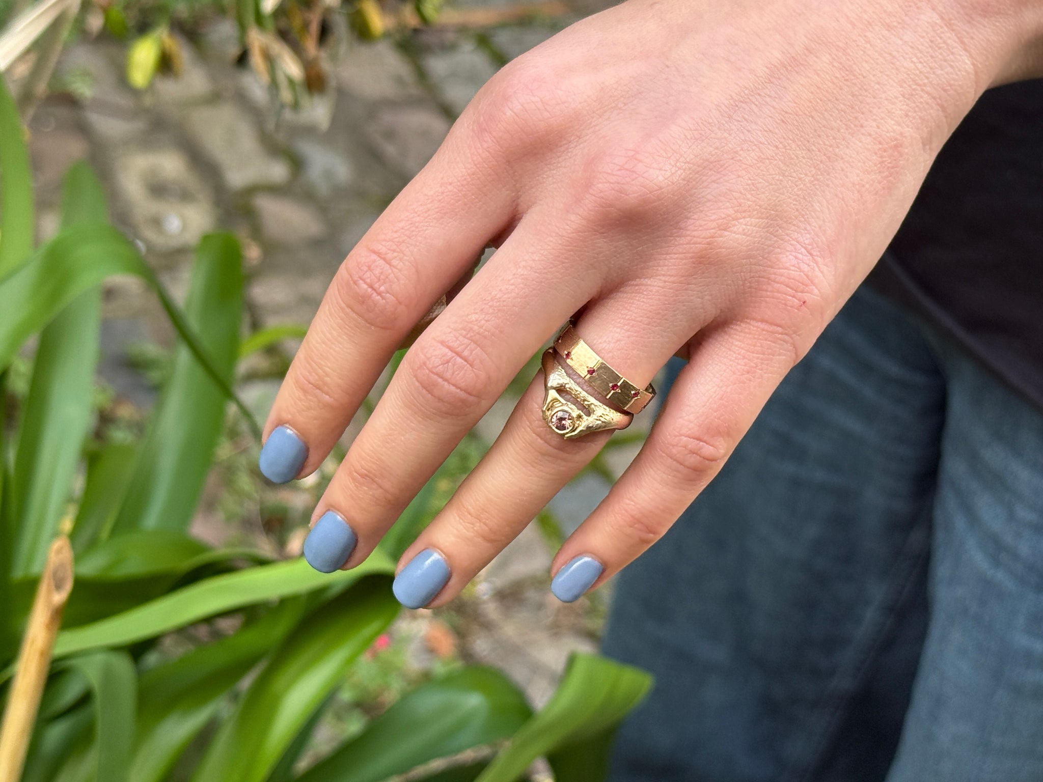 Materials | 14k yellow gold, 0.35ct Natural red sapphire.
